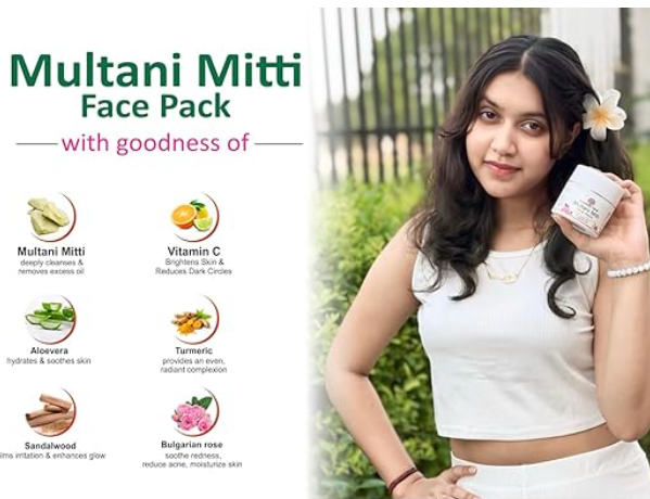 - Natural Oil Control & Acne Care: Formulated with pure Multani Mitti (Fuller’s Earth) to absorb excess oil, unclog pores, and reduce acne breakouts naturally.