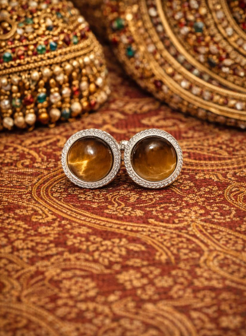Natural Certified Tigers Eye Gemstone Cufflinks for Men