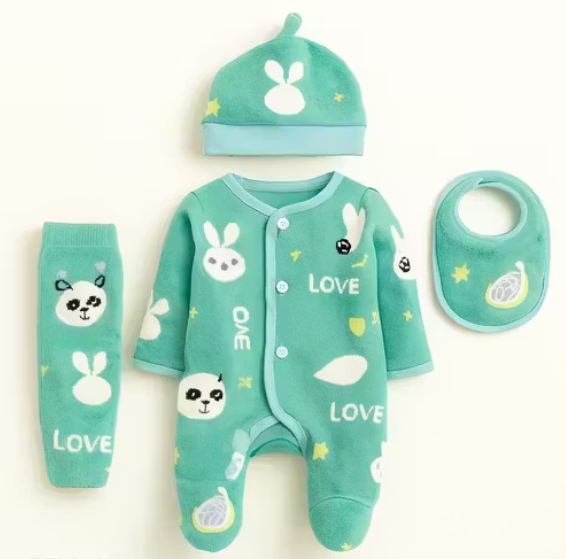 Baby boy girl winter set, soft fleece newborn clothes, baby outfit with cap, baby bib clothing set