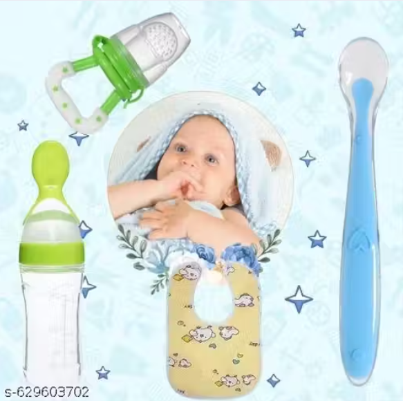 Make feeding time safe, clean, and stress-free with this Newborn Feeding Combo. Designed for infants and toddlers, the set includes a spoon bottle, feeder, feeding spoon, and baby bib, providing everything you need for comfortable and mess-free meals.