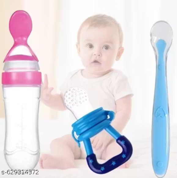 Simplify feeding time with the Newborn Feeding Combo, a complete set designed for infants and toddlers. This combo includes a spoon bottle, feeding spoon, and fruit feeder, providing everything you need for safe, mess-free, and comfortable feeding.