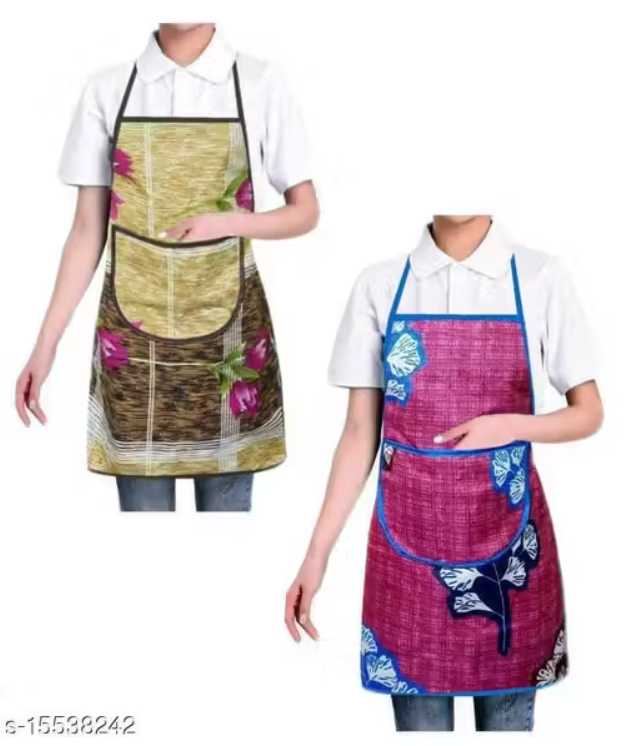 Nicasa Cotton Waterproof Kitchen Apron with Front Pocket Set of 2 Pcs (Color As Per Availability)