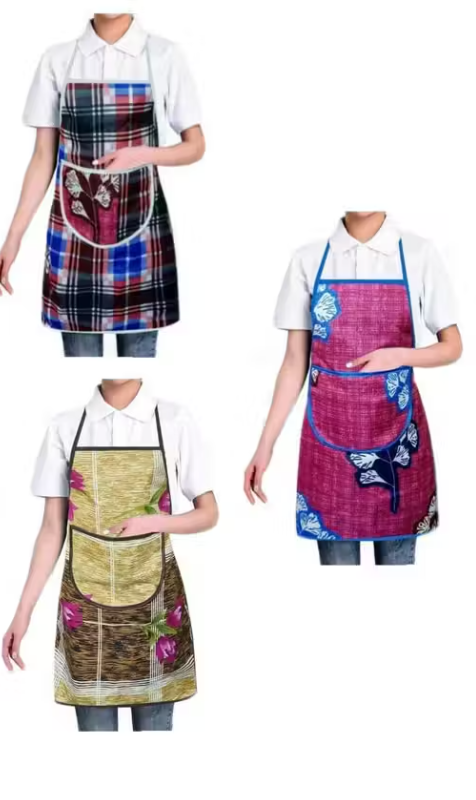 Nicasa Cotton Waterproof Kitchen Apron with Front Pocket Set of 3 Pcs (Color As Per Availability)