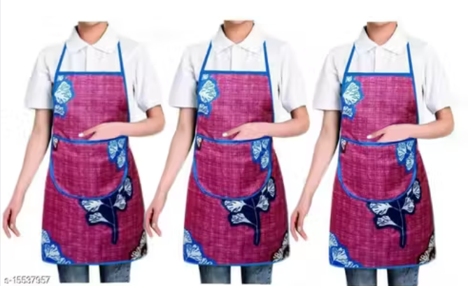 Nicasa Cotton Waterproof Kitchen Apron with Front Pocket Set of 3 Pcs (Color As Per Availability)