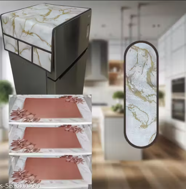 NICASA HD Preimum Quality Fridge Top Cover with 1 pec of Handlle and 3 pec of Fridge Mat - Set of 5