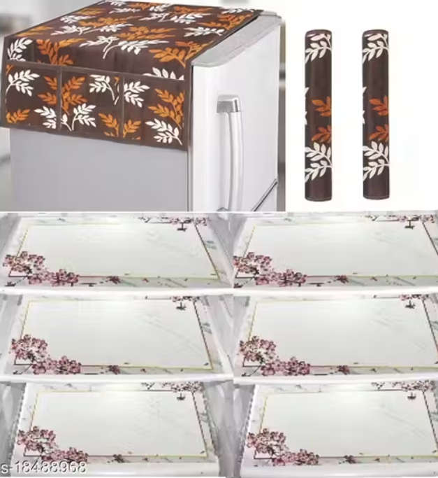 - Set Includes: 1 Fridge Top + 2 Handle Covers + 6 Mats (Total 9 pieces)