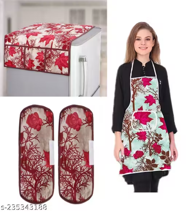 NICASA HD Premium Quality Fridge cover for Top with 2 Pec of handle and 1 pec of Aprons - Set of 4 piece