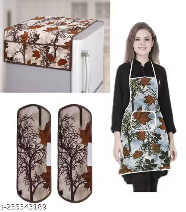 NICASA HD Premium Quality Fridge cover for Top with 2 Pec of handle and 1 pec of Aprons - Set of 4 piece