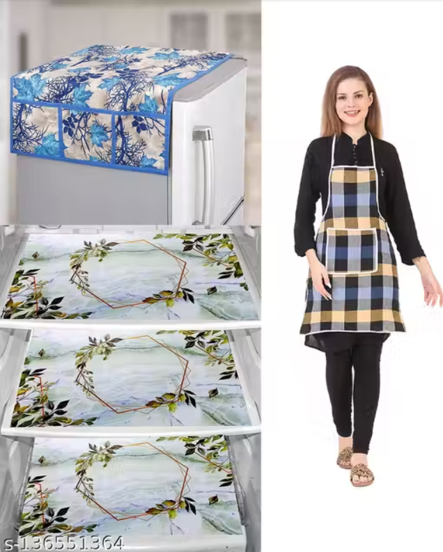 NICASA HD Premium Quality Fridge cover for Top with 3 pec fridge mats and 1 pec of Apron - Set of 5 piece