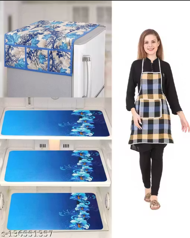 NICASA HD Premium Quality Fridge cover for Top with 3 pec fridge mats and 1 pec of Apron - Set of 5 piece