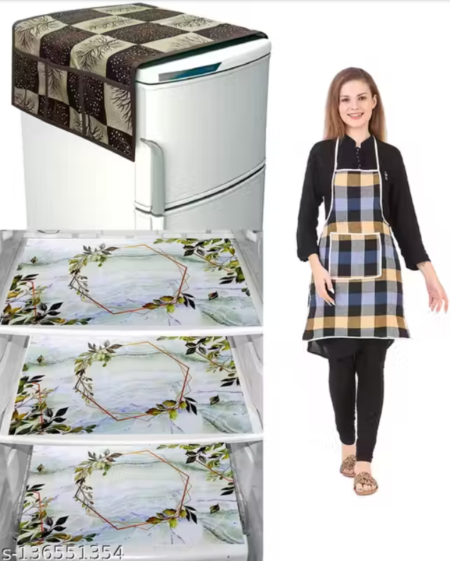 NICASA HD Premium Quality Fridge cover for Top with 3 pec fridge mats and 1 pec of Apron - Set of 5 piece