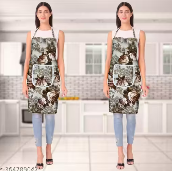 NICASA Kitchen Apron- Waterproof /Oil-Proof - Adjustable Aprons with Pockets for Women Men Washable - Pack of 2 (color As per availibility)