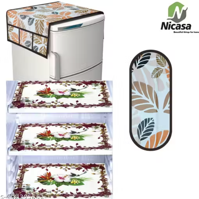 NicasaHD Premium Quality Fridge cover for Top with 1 pec handle set and 3 pec fridge mats - Set of 5 piece