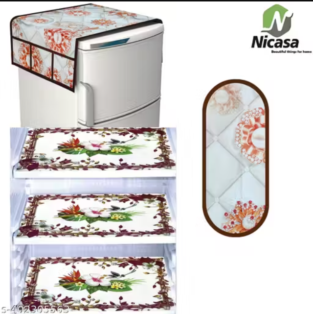 NicasaHD Premium Quality Fridge cover for Top with 1 pec handle set and 3 pec fridge mats - Set of 5 piece