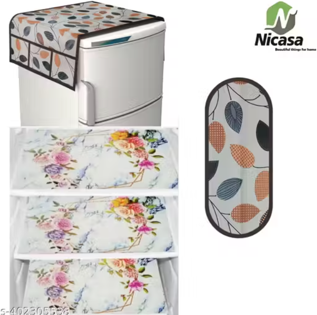 - Set Includes: Fridge Top Cover, Handle Cover & Fridge Mat