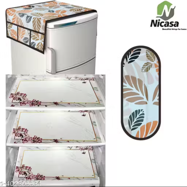 NicasaHD Premium Quality Fridge cover for Top with 1 pec handle set and 3 pec fridge mats - Set of 5 piece