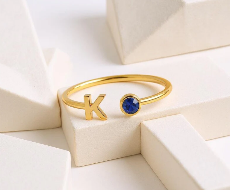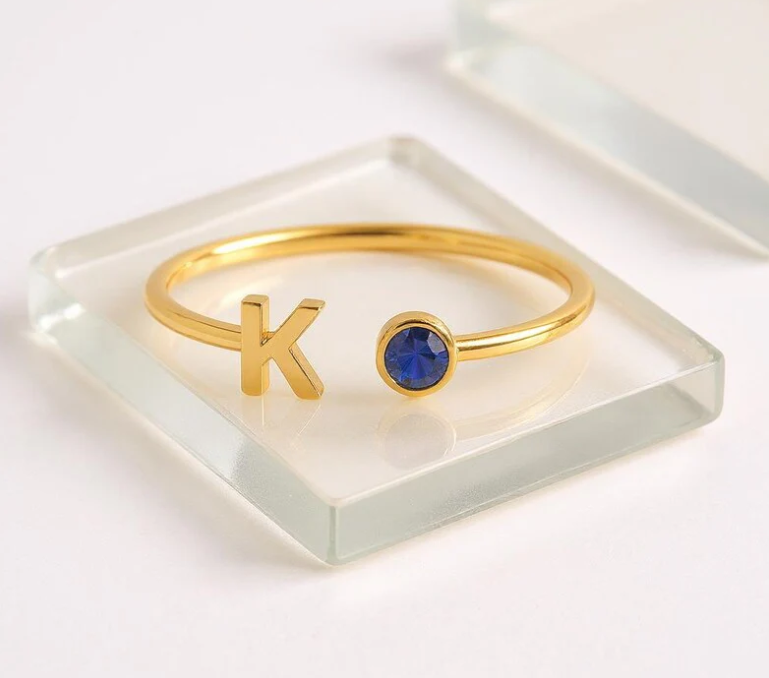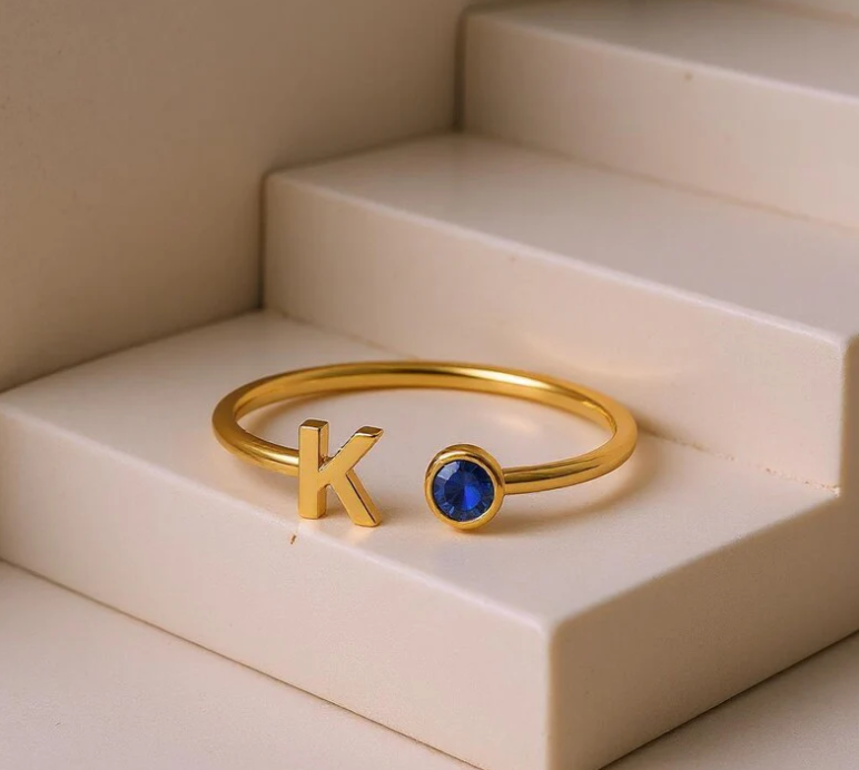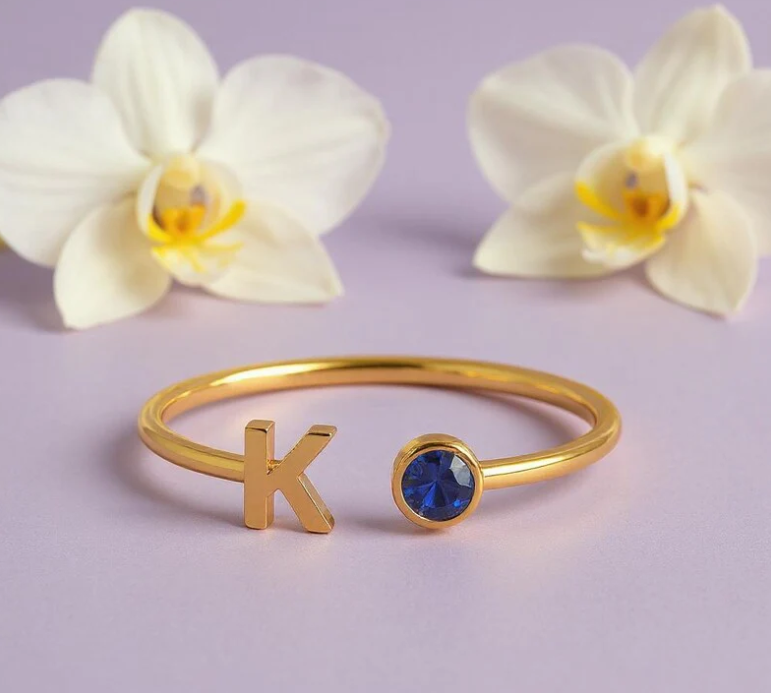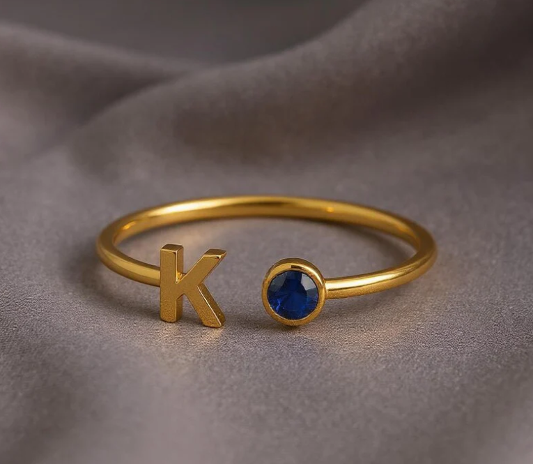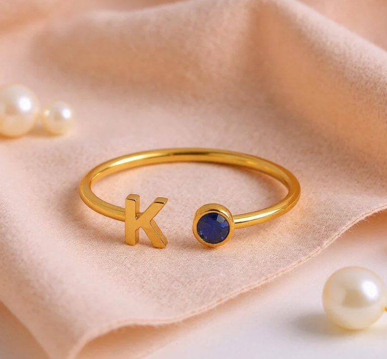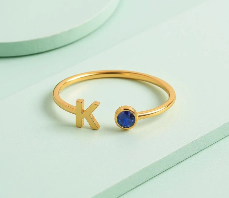 nitial Birthstone Ring, Birthstone Custom Ring, Letter Keepsake Ring, Letter Wedding Ring, Birthstone Personalized Ring, Name Initial Ring