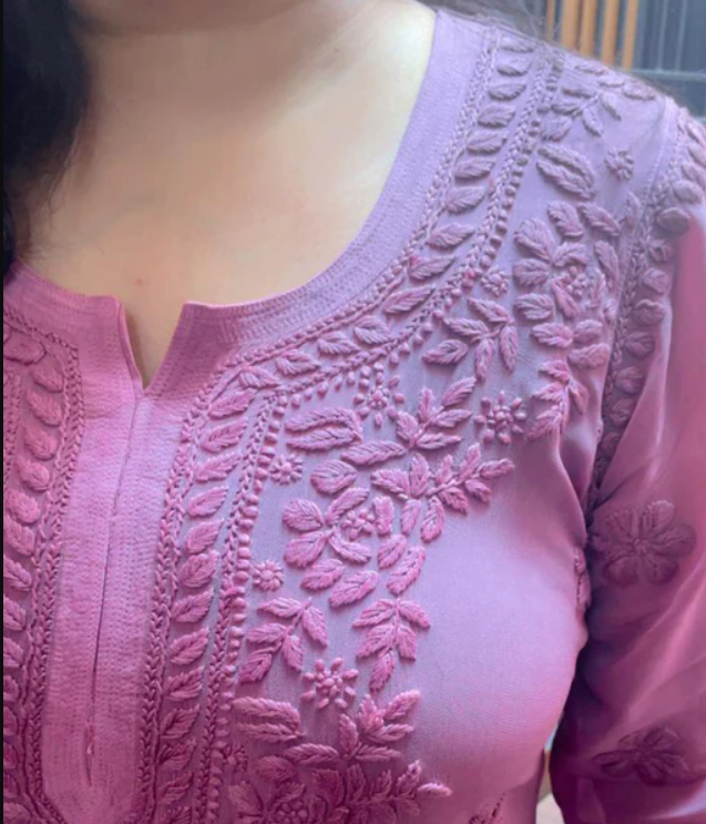 NITYA Mauve Pure Viscose Chikankari 3D Emboss Omray Kurti