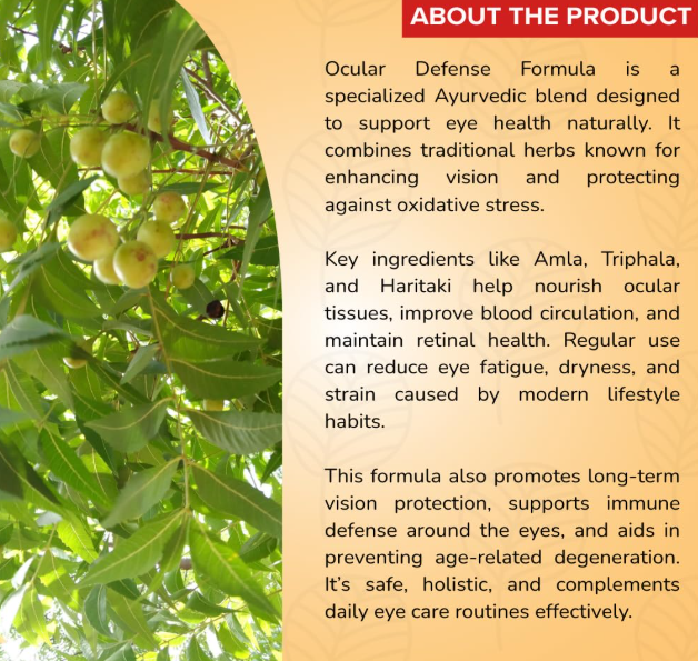 - it also help support healthy vision.ocular defense formula drops supports eye health during aging.it may help lower blood sugar levels. it may help reduce blood pressure, ocular defense formula detoxifies the digestive tract & improves metabolism which is helpful to eyes. it also increases ocular blood flow.