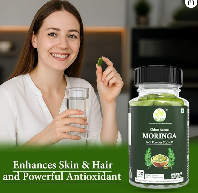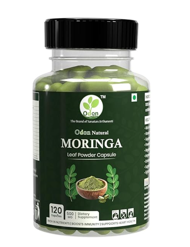 ODON NATURALS Moringa Leaf Powder Capsules - 120 Count | Nutrient-Rich Herbal Supplement with Vitamins & Minerals | Ayurvedic Daily Wellness Capsules for for Men & Women