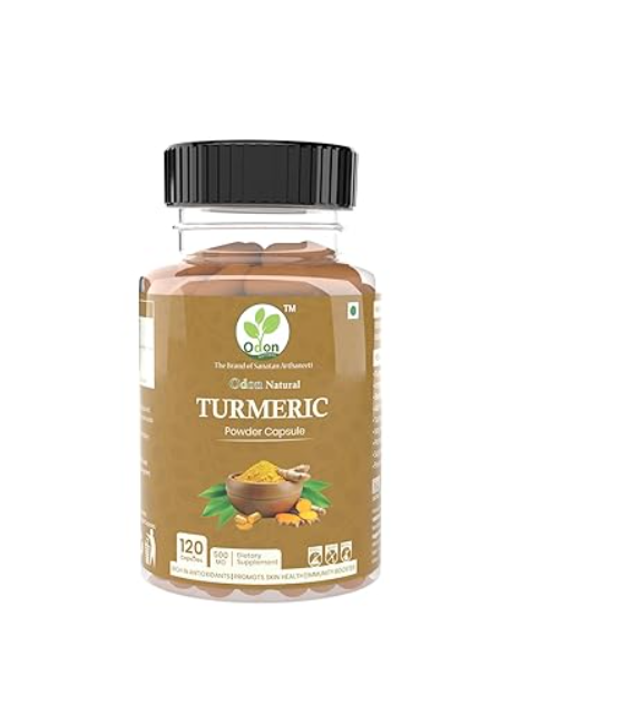 ODON NATURALS Turmeric Powder Capsules - 120 Count Ayurvedic Herbal Daily Wellness Booster for Men & Women