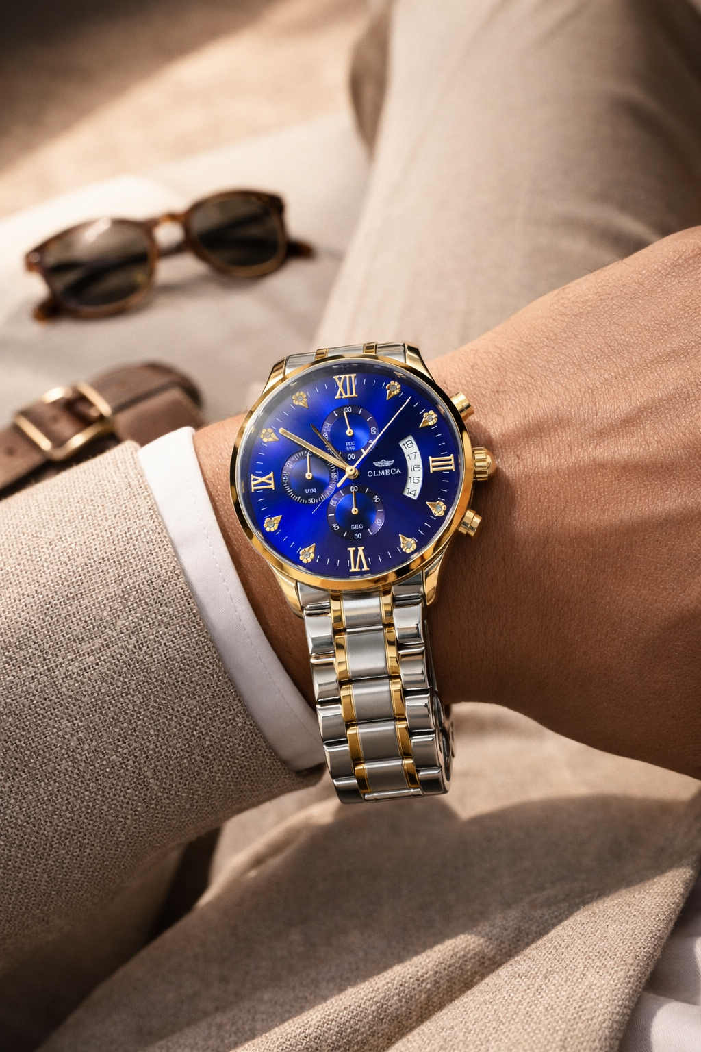 Choose the OLMECA Premium Chronograph Watch to experience dependable performance wrapped in a bold, elegant design—crafted to complement your lifestyle.