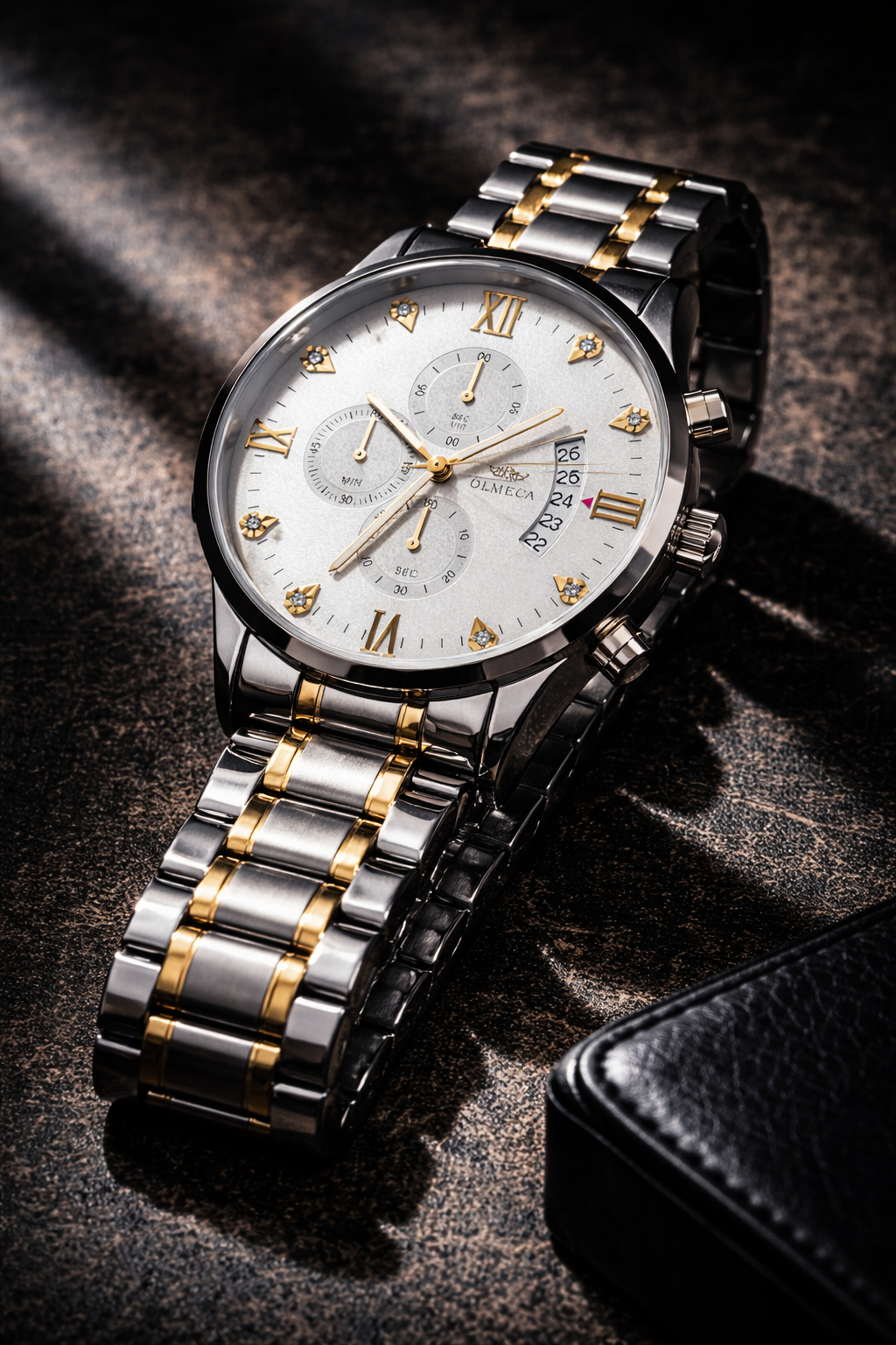Choose the OLMECA Premium Chronograph Watch to experience dependable performance wrapped in a bold, elegant design—crafted to complement your lifestyle.