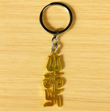 - DESIGN: Elegant gold-tone metal keychain featuring the sacred Om and Swastik symbols combined in an artistic design