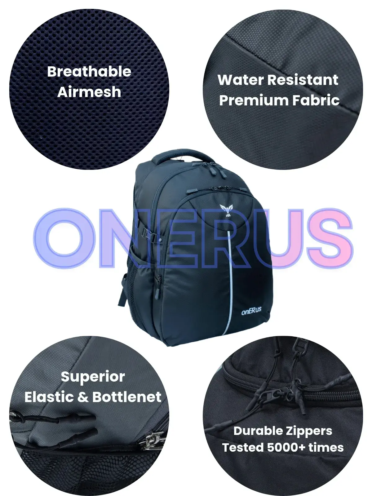 onERus NEXGEN 40L Designer School Backpack | Premium Splash-Proof Fabric, 2 Spacious Compartments, Smooth Zippers & Water Bottle Slots