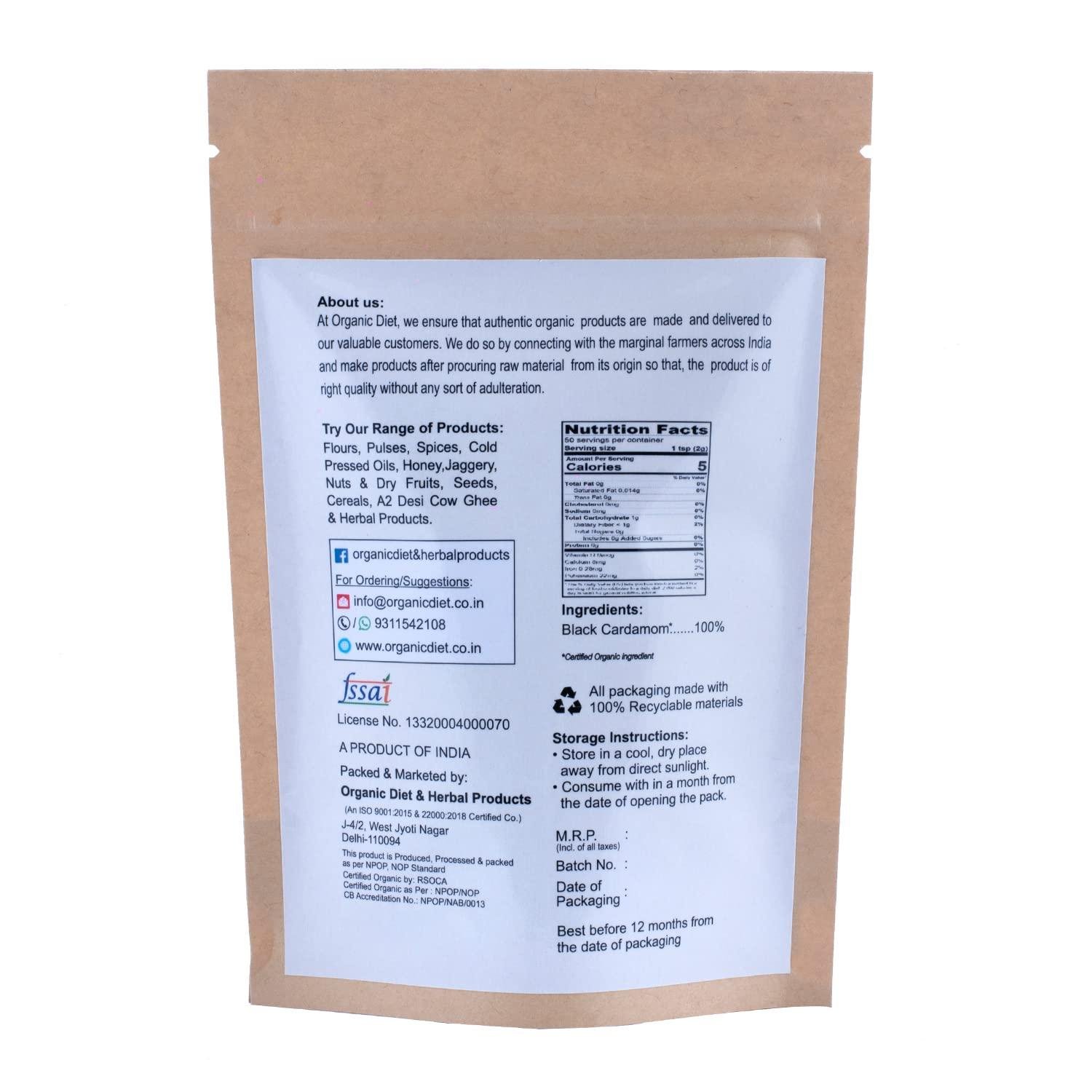 Organic Diet Fresh & Pure Organic Black Cardamom Raw (Sabut Elaichi | Cardamon | Cardamum | Ilaichi) – 50 g