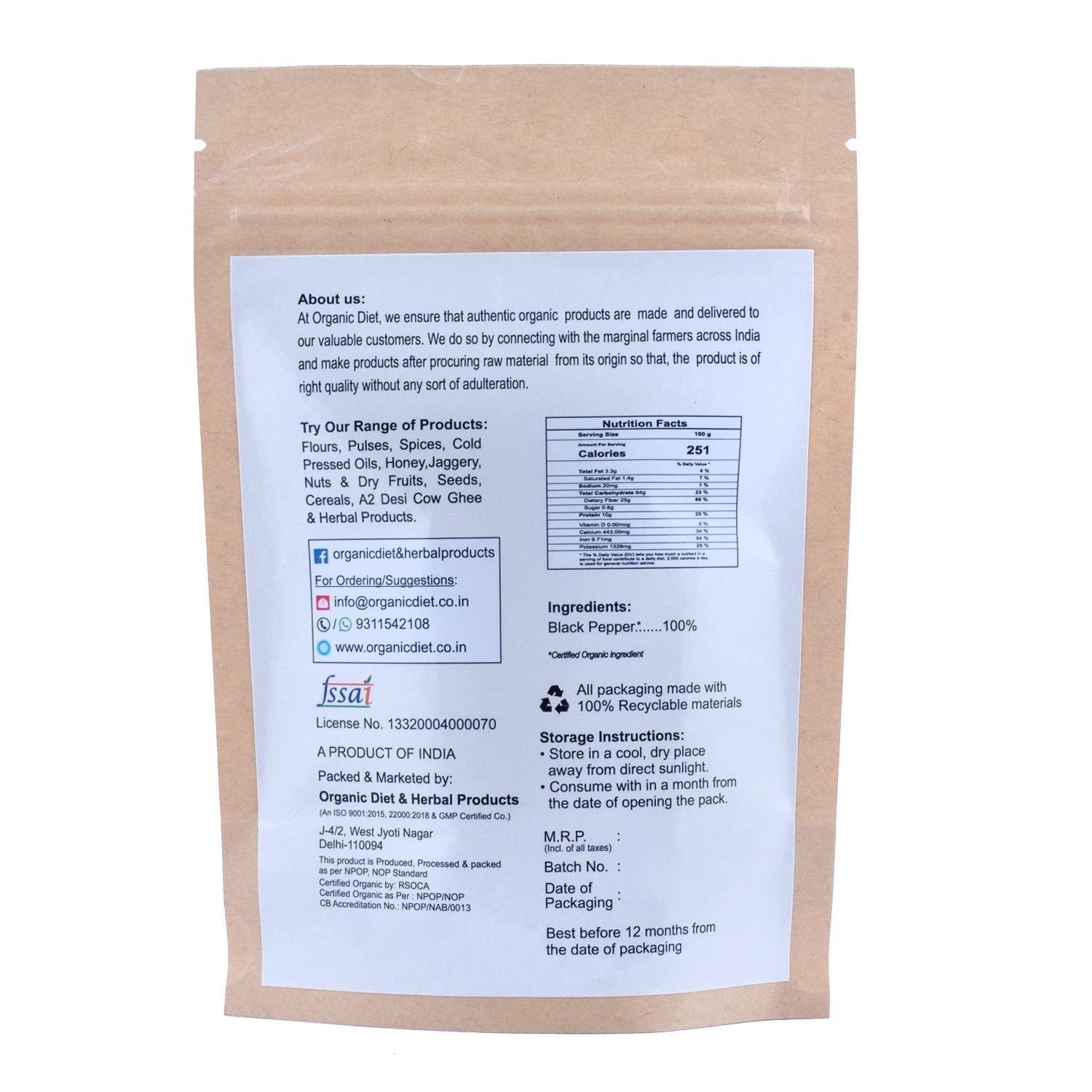 Organic Diet Fresh & Pure Organic Black Pepper Seeds Raw (Sabut Kali Mirch | Milagu Kare Manasu | Kalamari | Gol Mirch Dana) – 50 g