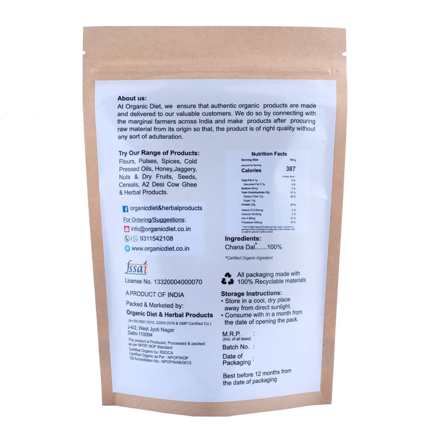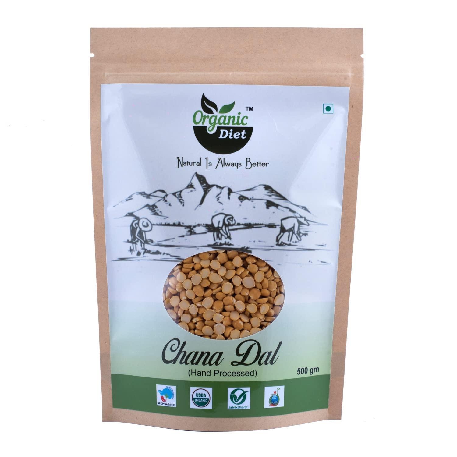 Organic Diet Fresh & Pure Organic Chana Dal Yellow (Chane Ki Dal) Split and Unpolished Pulses High Protein Nutritious, 500 gm (Pack of 1)
