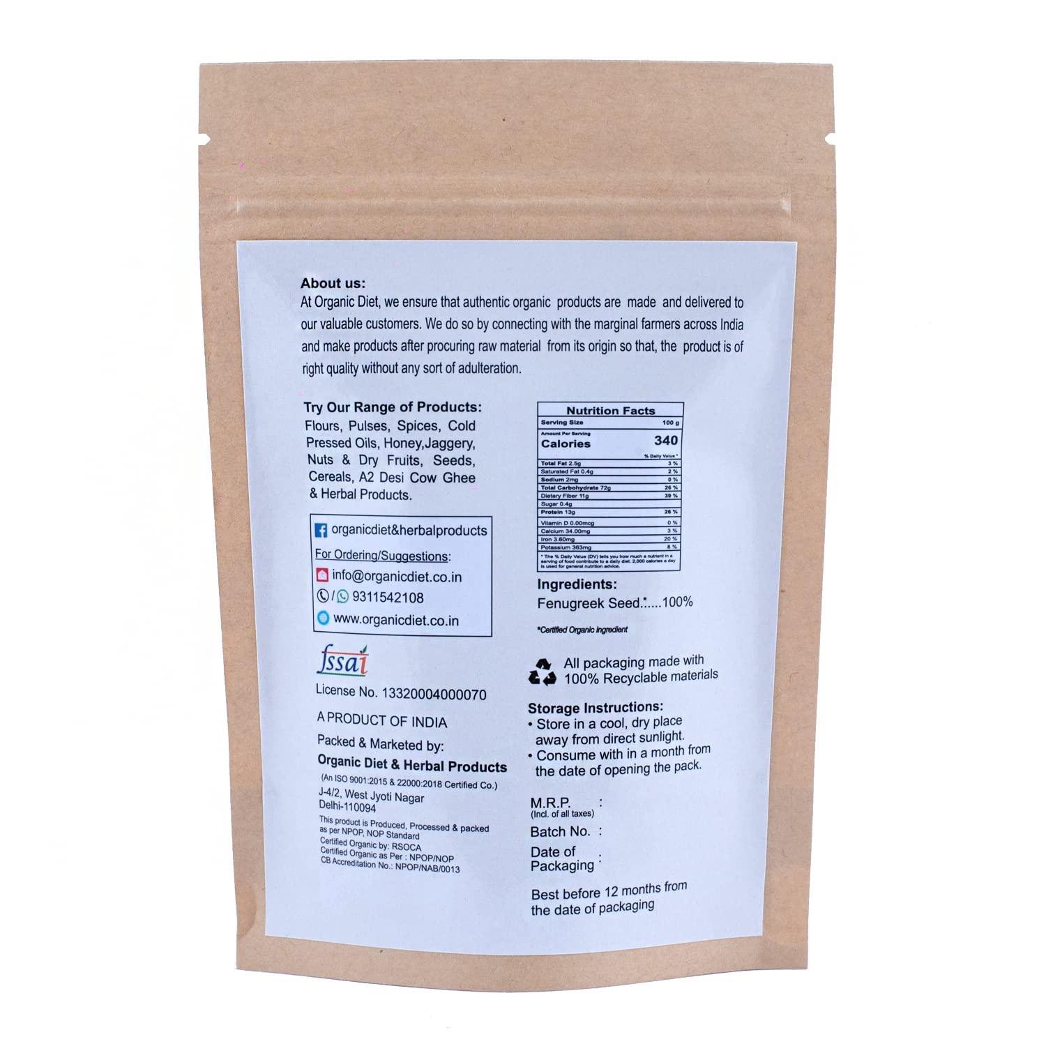 Organic Diet Fresh & Pure Organic Fenugreek Seeds Raw (Sabut Methi Dana | Methi Seeds | Menthi Ginja) – 100 g