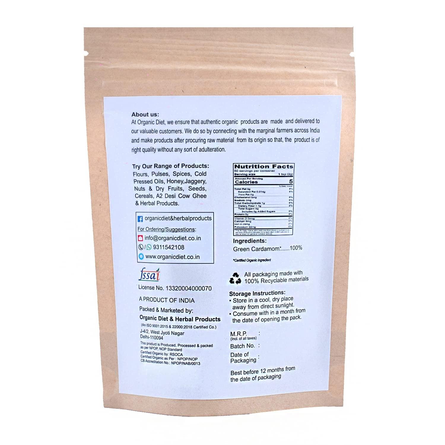 Organic Diet Fresh & Pure Organic Green Cardamom Raw (Sabut Elaichi | Cardamon | Cardamum | Ilaichi) – 50 g