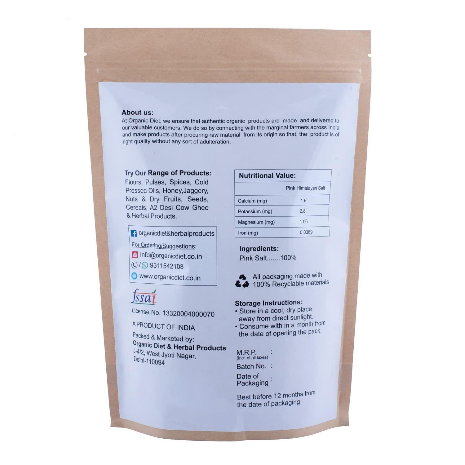 Organic Diet Fresh & Pure Organic Himalayan Rock Pink Salt (Sendha Namak) – 1 Kg