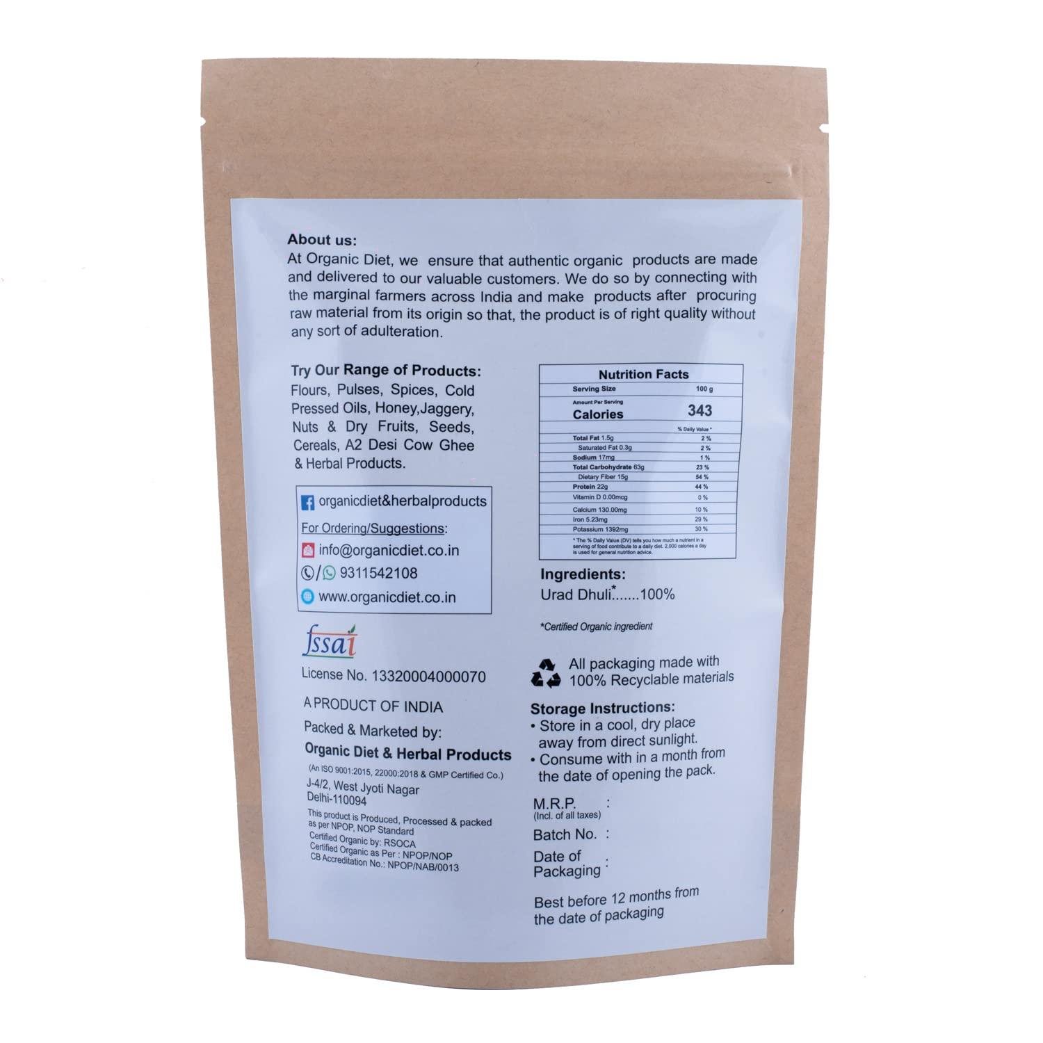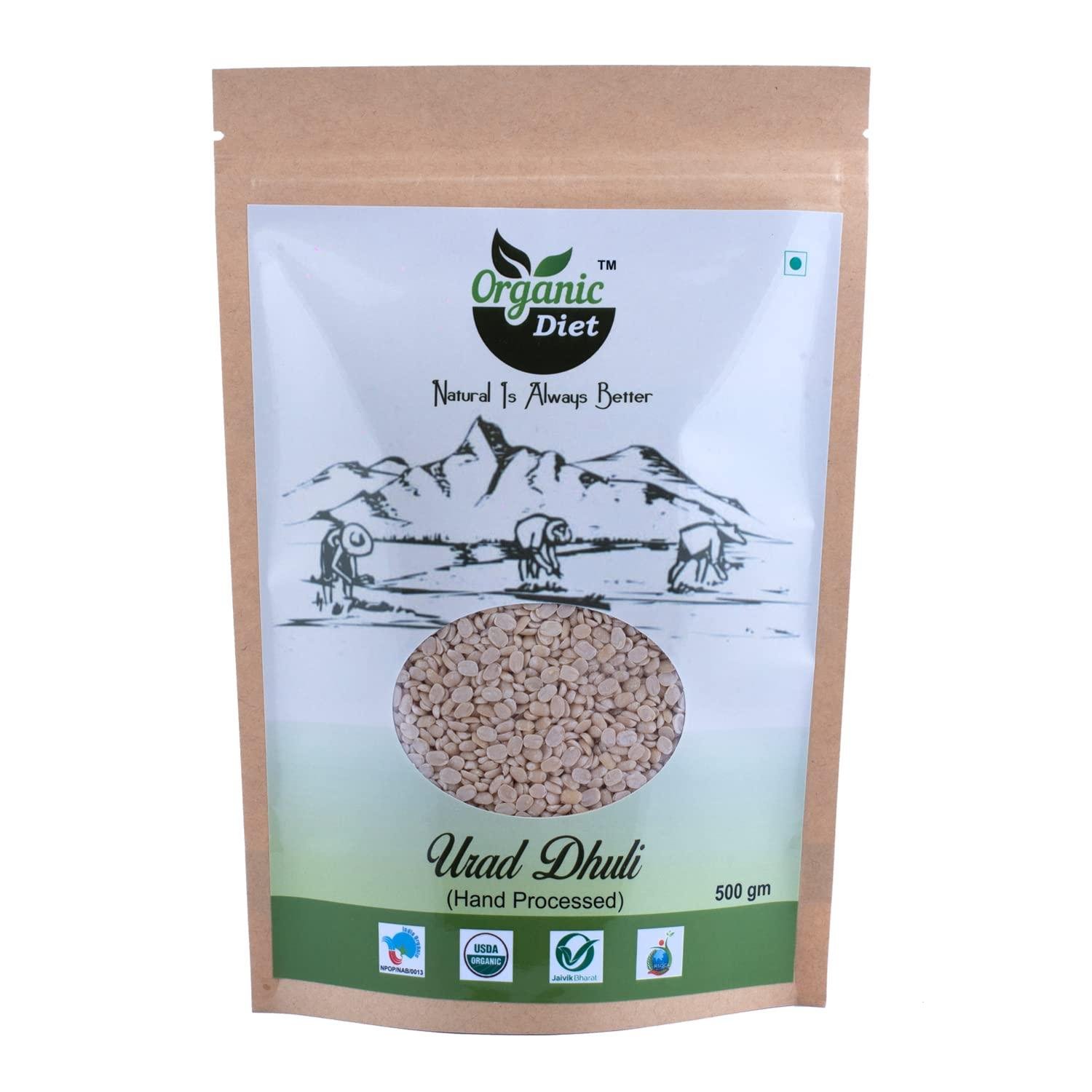 Organic Diet Fresh & Pure Organic Urad Dhuli Split (Urad Dal | Urad Ki Dal | Ulutham Paruppu) Split and Unpolished Pulses High Protein Nutritious, 500 gm (Pack of 1)