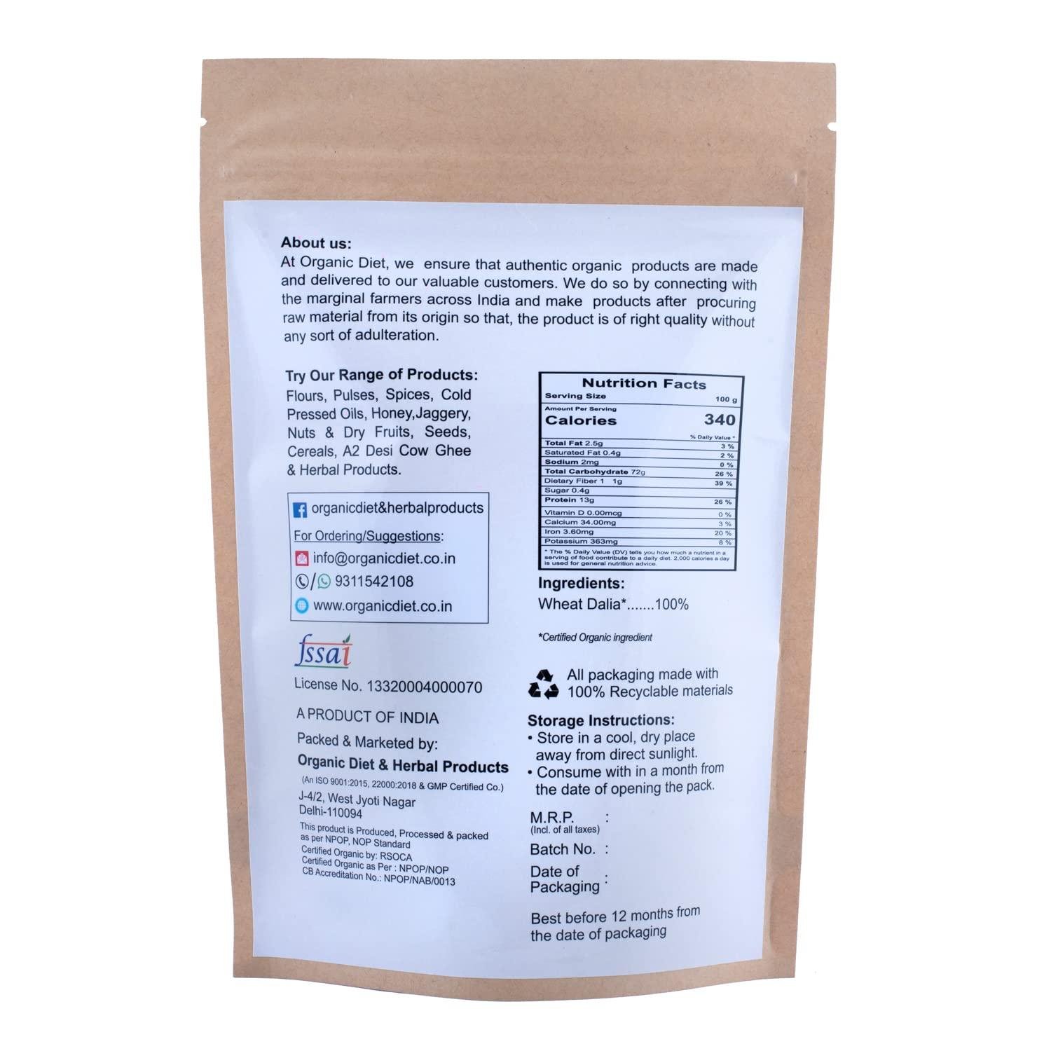 - Product: Organic Wheat Dalia (Cracked Wheat)