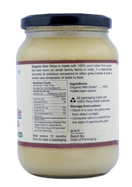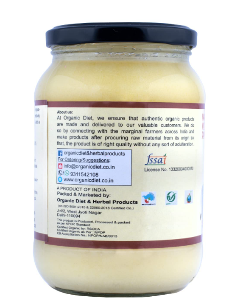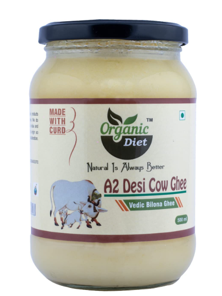 Organic Diet Organic A2 Desi Ghee | Pure Danedar Cow Ghee | Traditional Bilona Curd-Churned Method | Edible Healthy Cooking Ghee | No Added Preservatives, GMO |