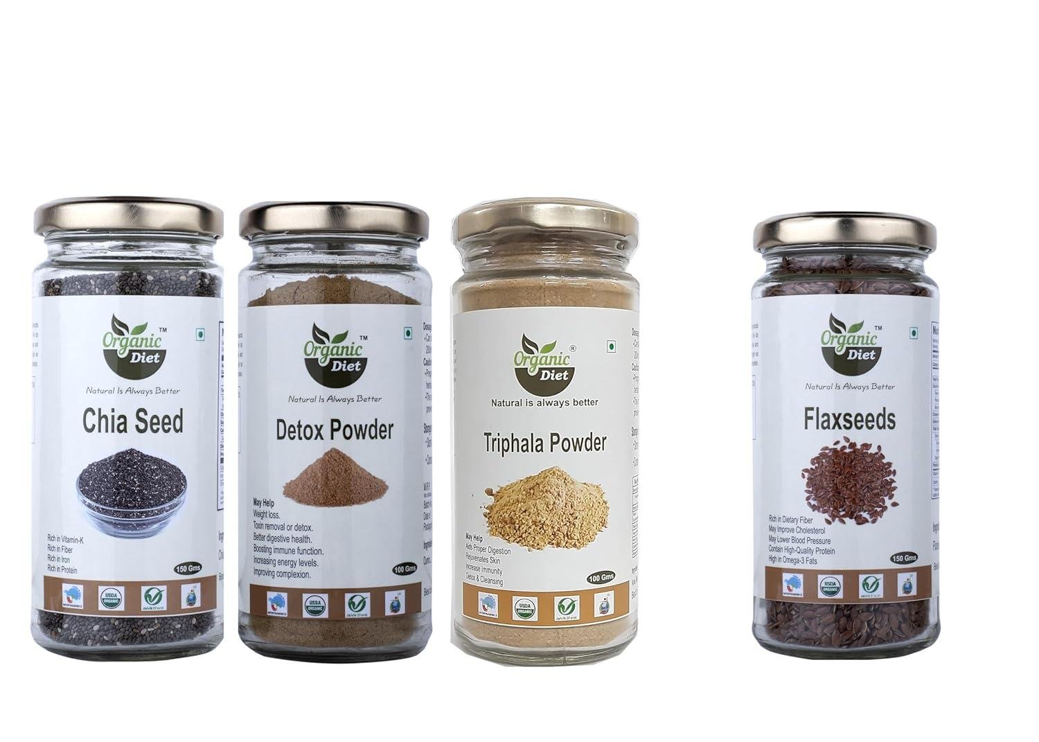 Organic Diet Wellness Combo – Chia Seeds (150g), Triphala (100g) & Internal Cleanse Powder (100g) | Free Flaxseeds (150g)
