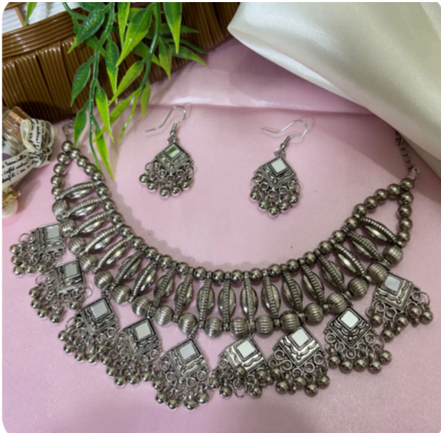 - Foursquare Oxidized Silver & Black Jewelry Set – Affordable oxidized set with black accents — stylish choice for ethnic outfits.