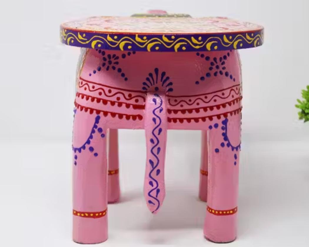 Painted Colourful Wooden Elephant Decorative Showpiece Stool/Side Table for Home/Office/Living or Bedroom Décor