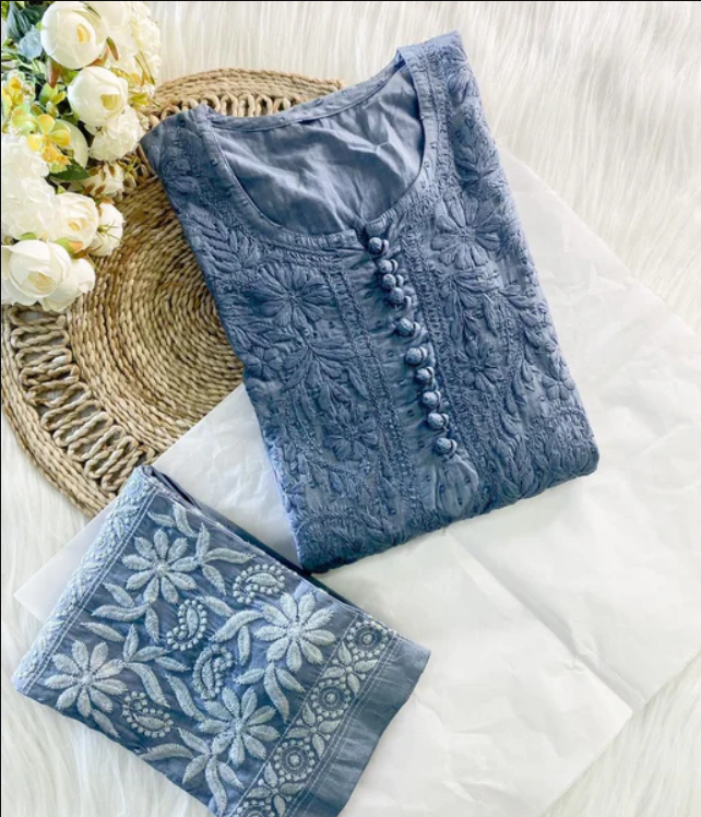 - Embroidery Color: Grey (Self-toned Chikankari)