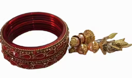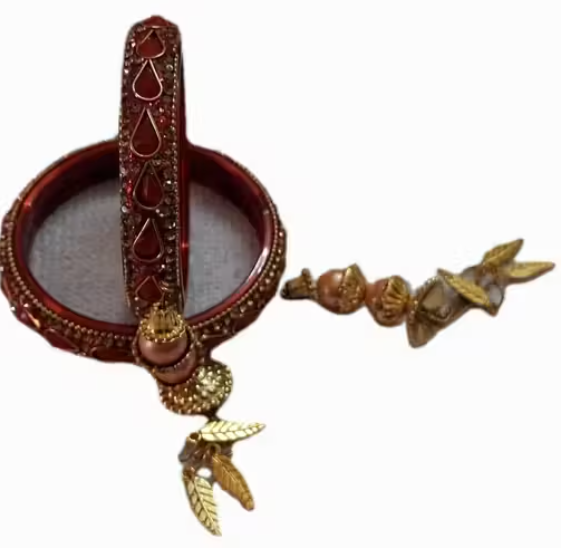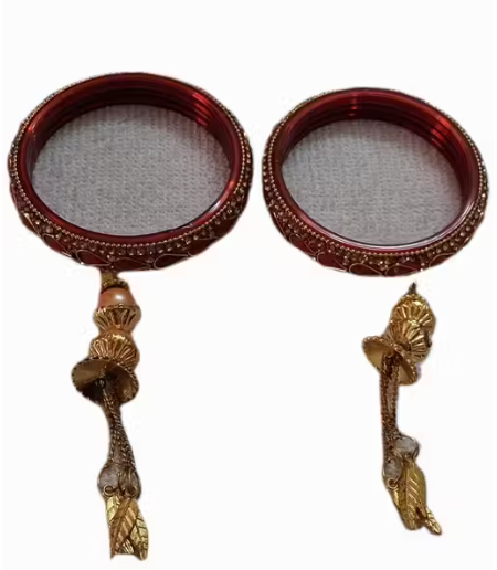 Peach Bangles For Women, Bridal Crystal Bangles, Golden Leaf Design Bangles, Wedding Jewelry For Girls, Ethnic Red Stone Bangles, Traditional Party Wear Bangles, Engagement Jewelry Bangles