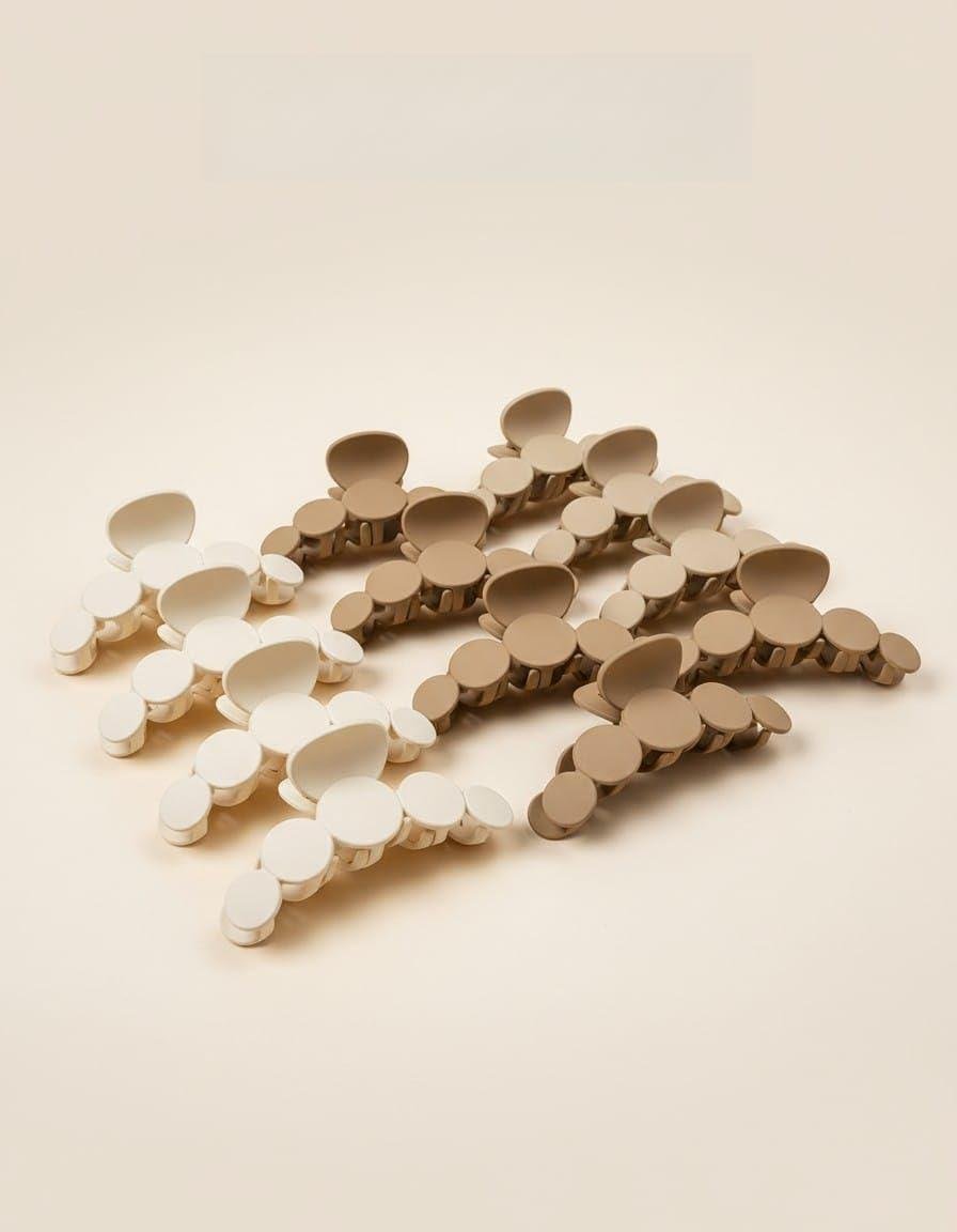 - STYLISH DESIGN: Pebble-inspired hair claw clips featuring a unique geometric pattern with circular disc elements in neutral beige and cream tones for a modern, minimalist aesthetic