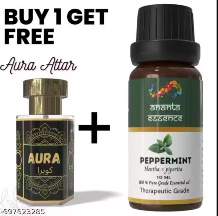 Peppermint Essential Oil for Aromatherapy & Home Fragrance with Free Aura Attar | Essential Oil for Diffuser & Soap Making | Peppermint Aroma Oil | 10 ml