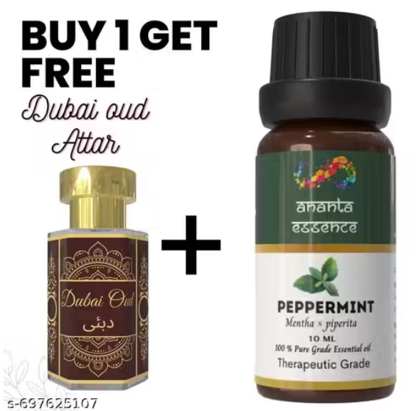 Peppermint Essential Oil for Aromatherapy & Home Fragrance with Free Dubai Oud Attar