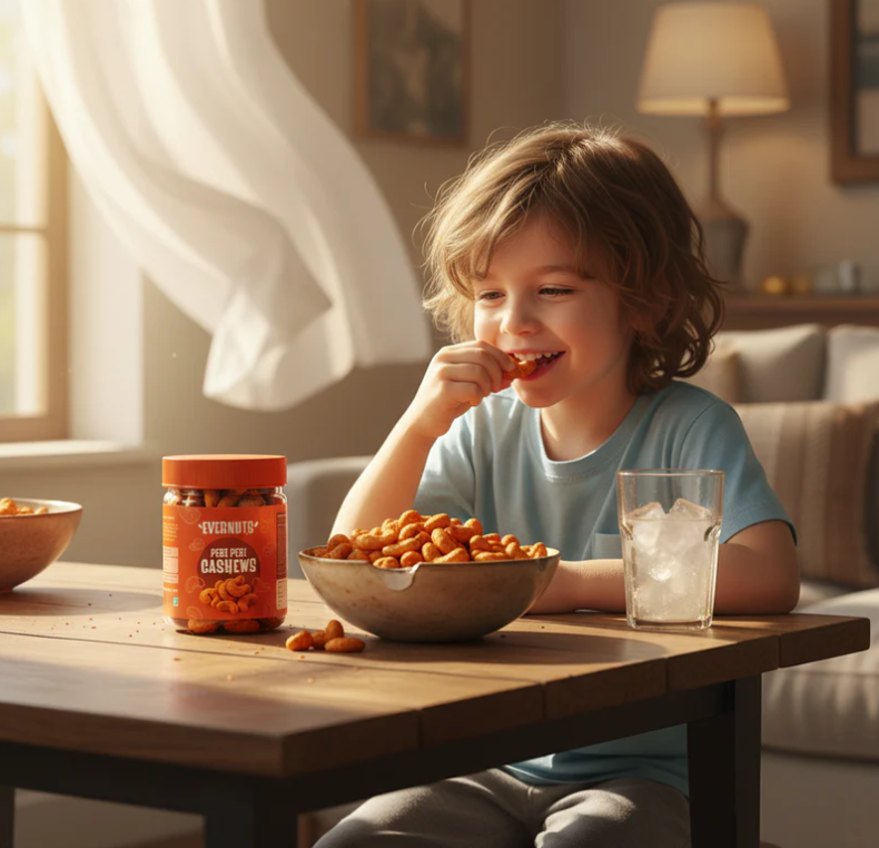 Buy Peri Peri Cashews Online from EverNuts — premium cashews roasted till perfectly crunchy and coated in a bold peri peri seasoning that means business.