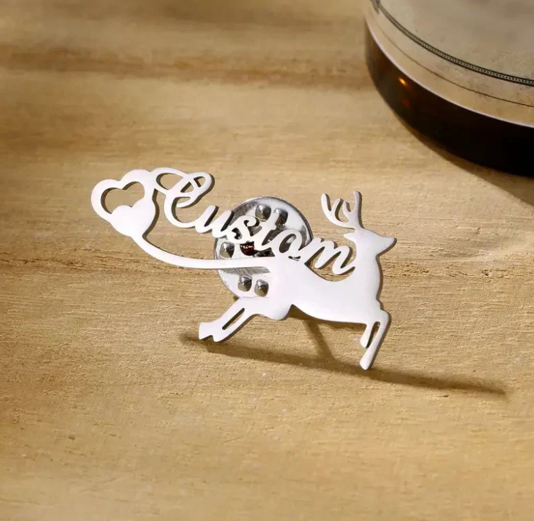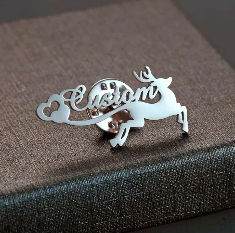 Add a touch of nature-inspired elegance with the Personalized Deer Style Name Brooch. Featuring a graceful deer design, this brooch can be customized with your name or initials, making it a unique and stylish accessory for any occasion.