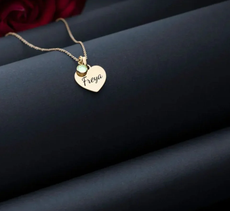 - Style: Personalized Engraved Heart Birthstone Necklace