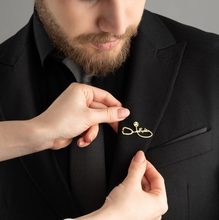 This Personalized Initial Letters Brooch is the perfect gift for a bride or groomsmen. With its healthcare worker design, it adds a meaningful touch to any outfit. Expertly crafted with custom initials, this brooch is a stylish and personalized way to show appreciation for your favorite healthcare worker.